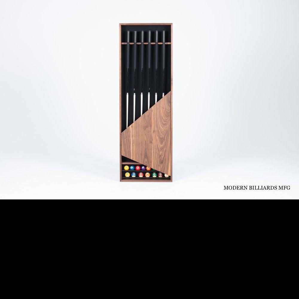 Modern, Elegant Sleek Design, every wall rack is handmade to perfection with the finest level of walnut wood We provide any type of woods for any custom projects 1 set of Amarith Tournament ball set from Belgium 5 fiberglass Cue from Cuetec 1 Brige 1 Walnut wood triangle 1 Set of Chalk